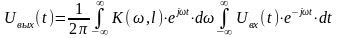 Обозначим входной и выходной сигналы линии как Uвх(t) и Uвых(t) и запишем их спектральные плотности (прямое преобразование Фурье):
