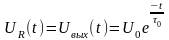 Экспоненциальный спад выходного напряжения описывает процесс зарядки ёмкости через сопротивление R и соответствующее перераспределение напряжения между R и C. При этом постоянная времени 0 характеризует скорость зарядки ёмкости и может быть интерпретирована как время, за которое напряжение UR уменьшится в е раз.