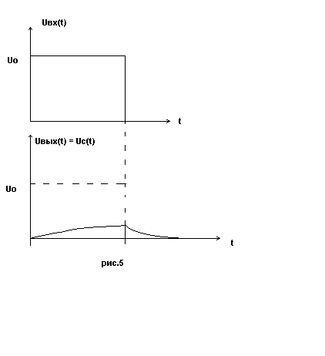 Поскольку ёмкость С не может зарядиться мгновенно, то для t = 0, UR = U0 всё входное напряжение оказывается приложенным к сопротивлению. С учётом этого начального условия решение уравнения (18) запишется в виде:
