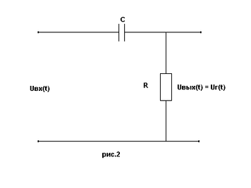 Таким образом, мы приходим к схеме дифференцирующего четырёхполюсника, показанной на рис.2, в которой выходной сигал снимается с сопротивления R.