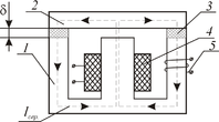 Магнітне коло електромагніта (рис.5.6) складається з ярма 1, якоря 2 і каліброваної прокладки 3 із немагнітного матеріалу товщиною