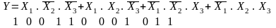 Число слагаемых определяется числом единичных наборов (Y = 1) таблицы истинности, а число сомножителей определяется числом независимых переменных, входящих в рассматриваемые наборы.