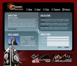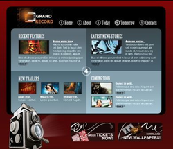 Website of Grand Record cinema is based on Golden Screen Cinema website (www.gsc.com. my). It includes 5 main pages which are “Home", “About", “Today", “Tomorrow" and “Contacts”, and also it has two direct accesses to Order Tickets Online and Download New Wallpapers.