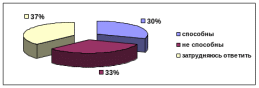 На основе информации, сведенной в таблицу 1, необходимо построить диаграммы по каждому вопросу, что наглядно покажет процентное соотношение ответов среди респондентов и поможет сделать выводы по поднятой проблеме.