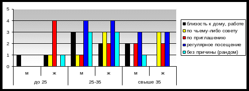 Следующим этапом исследования является наблюдение. В ходе наблюдения было установлено, что информирование о деятельности кафе ведется активно, реклама расположена в местах скопления людей. Но недостаточно информации о ценах, в результате чего мы наблюдали следующее поведение потребителей: зайдя в кафе, человек просто выходил из него, не узнав цены, а просто увидев интерьер, который в сознании потребителей соотносится с исключительно высокими ценами, следовательно, необходимо дополнительное информирование о ценах. Если учесть тот факт, что кафе расположено в какой-то мере на трассе, то логично предположить, что автолюбители – это тоже наша целевая аудитория, тогда возникает вопрос, почему нет рекламы на дороге? Как потом выяснилось, она была, но была неэффективной вследствие непрофессионального выполнения и ее на время убрали.