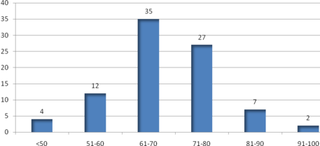 При формировании запроса на разработку сайта было сделано замечание о том, что дизайн для сайта уже готов (то есть осталась только разработка кода сайта), но возможна передача всей работы (включая дизайн) в «одни руки». Таким образом, мы получали заявки, в которых была указана стоимость всего проекта в целом и цена программирования отдельно. Выделение её в отдельную категорию позволило также оценить его долю в общей стоимости проекта (по вертикальной оси отражено количество ответов в процентах, по горизонтали – доля программирования в общей цене, в процентах) (рис.3):