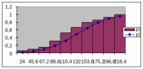4) Для графического описания выборки по условиям задания необходимо построить гистограмму относительных частот (рис. 1) и эмпирическую функцию распределения