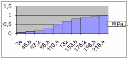 б) Эмпирическая функция распределения определяется по значениям накопленных относительных частот представителей разрядов: