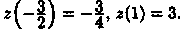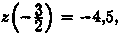 Значения функции z(1) = -3/4,z(2) = -4,5.