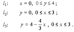Угловые точки: О (0; 0), В (0; 4), А (3; 0).