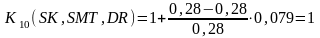 Таким образом, получаем поправочный коэффициент на отличия в условиях платежа для кредитной формы оплаты SMT-250:
