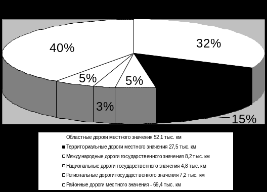 Общая численность автомобильных дорог в Украине составляет 169.1 тыс. км (Рис 2.1)