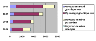 | Фундаментальні дослідження | Прикладні дослідження | Науково-технічні розробки | Науково-технічні послуги | ||