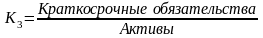 • Кс — показатель соотношения краткосрочных обязательств и наиболее ликвидных активов, этот коэффициент является обратной величиной показателя абсолютной ликвидности;