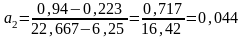 a1=0,036*2+0,044*13,29-0,35=0,307 a2=0,036*14,29+0,044*2-0,35=0,252