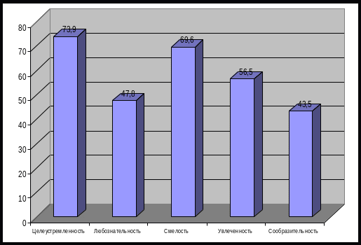 Таким образом, мы можем сделать вывод, что исходя из результатов анкетирования учащихся разработанные курс «Технология проектного метода в обучении экономике» позволяет учащимся говорить о достаточной сформированности таких качеств творческой личности как целеустремленность, смелость, увлеченность, любознательность и сообразительность. Развитию же других качеств следует уделять более пристальное внимание, с помощью использования разнообразных заданий и уроков для студентов в рамках данного курса.