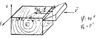 Для более полной характеристики резания вводится угол φ между вектором скорости резания и направлением волокон.