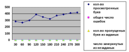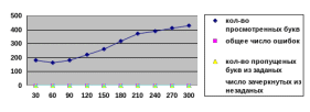 В результате приведенных выше данных, можно сказать, что в основном каждые 30 секунд, испытуемая увеличивала количество просмотренных букв. В связи с этим, можно установить, что скорость внимания, у нее высокая.