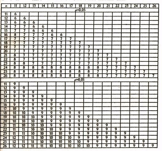 Критические значения критерия Q Розенбаума для уровней статистической значимости р <=0,05 и р <=0,01 (по Гублеру Е.В., Генкину А.А., 1973)