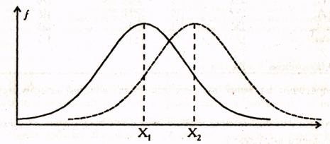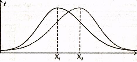 Рис. 3. Вариант соотношения распределении признака в двух выборках, при котором критерии Q беспомощен
