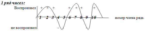 Экспериментатор читает испытуемому числа 1 ряда с интервалом в 1 секунду. Затем испытуемый записывает запомнившиеся ему числа.