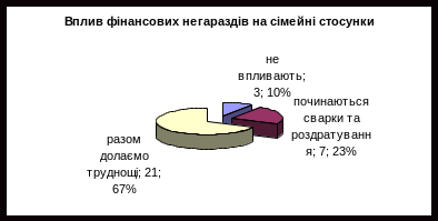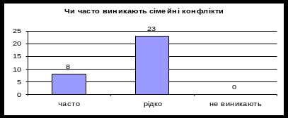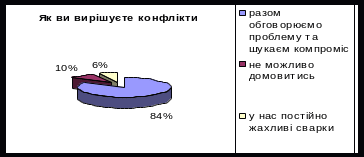 Гіпотеза про те, що конфлікт є невід’ємною складовою буденного життя кожної української сім’ї підтвердилася, оскільки дані опитування показали, що в кожного конфлікти або були, або є, і кожен з цим стикався в своєму житті.