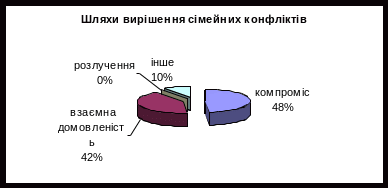 Найбільш поширеними запропонованими респондентами шляхами вирішення конфліктів є досягнення компромісу і взаємна домовленість. Важливе значення у вирішенні конфлікту відіграє обговорення проблеми, яке дає змогу встановити причину конфлікту, основних винуватців, розібратися у всьому і досягнути певної згоди.