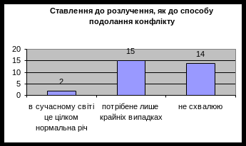 Більшість опитаних вважають, що в разі конфлікту з розлученням поспішати не варто, а лише в крайніх випадках, коли без цього неможливо обійтися.
