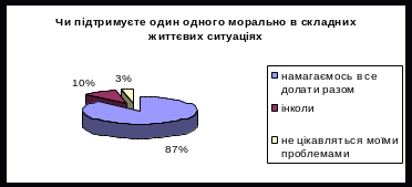 Як показало опитування, приблизно 80% опитаних намагаються порозумітися один з одним і навіть піти на компроміс, що є безумовно позитивним результатом, і на якусь частину сприяє зменшенню конфліктних ситуацій. А це означає, що гіпотеза про те, що в більшості людям складно йти на поступки спростовується.