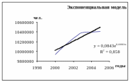 - получить прогнозные оценки численности населения за 2006-2007 годы.