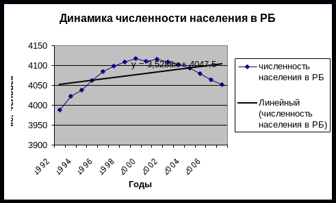 Можно сделать вывод, что численность населения по Республике Башкортостан увеличится на 33656 человек по сравнению с 2007 г.