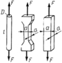 30. Визначити межу міцності при трьохосьовому розтягу стального стержня і зразка–призми із бетону. Руйнуюче навантаження F для зразків сталі і бетону 30 кН. Розміри стандартних зразків і розрахункові формули наведені у табл. 5. Розміри бетонної призми 101080 см.