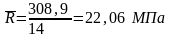 – середня міцність бетону, що дорівнює середньому арифметичному межі міцності окремих зразків Ri:
