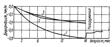 42. Зразки–призми із литого бетону розміром 7721 см ізолювали парафіном і при напрузі = 2,5 МПа визначали повні деформації п. Паралельно встановлювали на ненавантажених зразках до заданого строку тверднення усадочні деформації ус.. Визначити деформації повзучості бетону у віці 2, 6, 12 і 18 місяців, якщо повні деформації бетону у вказаному віці складали відповідно 0,1;0,5;0,7 і 0,8 мм/м, а усадочні деформації 0,1;0,28;0,35 і 0,36 мм/м. Результати вишукувань показати графічно.