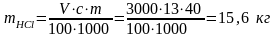 79. В каналізаційний колектор, помилково збудований із силікатної цегли, попадають промислові стічні води, які містять соляну кислоту у кількості с=13 г на 1 м3 води. Розрахувати, яка кількість вапна буде розчинена із цегляних стін колектора за місяць його експлуатації, якщо за добу через нього проходить v=100 м3 стічних кислих вод, а у реакцію вступає m=40% кислоти. Через колектор в місяць проходить стічних вод