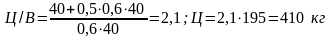 Для бетону М400 розрахункові значення Ц/В і Ц відповідно складають: