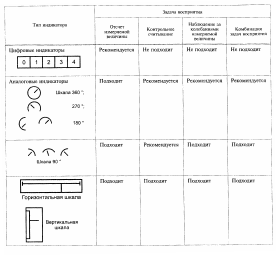 Не все индикаторы пригодны для решения всех упомянутых задач восприятия. В таблице 4 даны рекомендации по применению индикаторов для различных задач восприятия. С ее помощью можно выбрать индикаторы, минимизирующие ошибки восприятия и обеспечивающие быструю идентификацию, что облегчает правильное решение задачи восприятия.