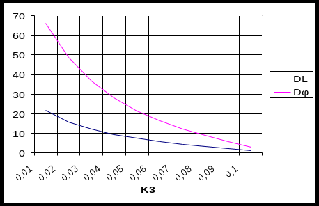 Графики функциональных зависимостей L=f(k3) и =f(k3).