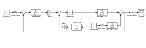 Cтруктурная схема САР угловой скорости двигателя внутреннего сгорания (дизеля) в обозначениях Simulink.