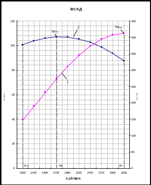 | № п/п | n, мин-1 | Ne, КВт | Mk, H*м |