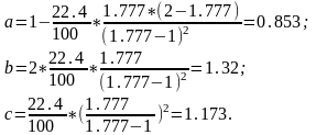 Проверка правильности расчета коэффициентов: а + b - с = 0,852+1,32 – 1,171 = 1,001 - условие выполняется.