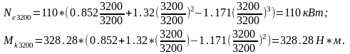 Для расчета показателей тягово-скоростных свойств, особенно применением ЭВМ, удобно пользоваться не графическими, а аналитическими зависимостями Ne = f(n) и Мк = f(n).