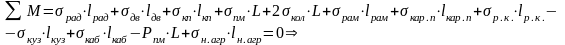 Составляем уравнение моментов сил относительно задней оси автомобиля и определяем из этого уравнения координату центра масс неучтенных агрегатов
