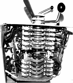 Переход с одной позиции на другую совершается за 15 оборотов шестерни двигателя, или за 1,5 оборота червячного колеса. Переход условно можно разбить на три этапа. Первый этап: поворот червячного колеса на пол-оборота (на 180°), одновременно двухцевочный поводок 3 поворачивается на 180°, крест 4 на 60°, вал 12 на 30°, полый вал 5 и одноцевочный поводок 6 на 180°: 1,5=120°. Поскольку цевка поводка 6 не дошла до креста 7, то крест 7, шестерня 13, валы 11 и 9 остаются неподвижными. Второй этап: червячное колесо поворачивается еще на 180°, одновременно вал 12 поворачивается на 30°, и теперь уже цевка поводка 6, проходя дугу в 120°, поворачивает крест 7 на 60°, вал 11 на 18° и вал 9 на 9°. Третий этап: червячное колесо поворачивается еще на 180°, вал 12 - еще на 30°, а валы 11 и 9 остаются неподвижными. Во время первого этапа отключается один из четырех контакторов с дугогашением, во время второго один из контакторов без дугогашения размыкается, а другой затем замыкается.