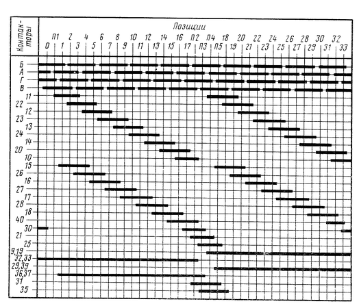 Рис.8. Диаграмма замыканий и размыканий контакторных элементов ЭКГ-8