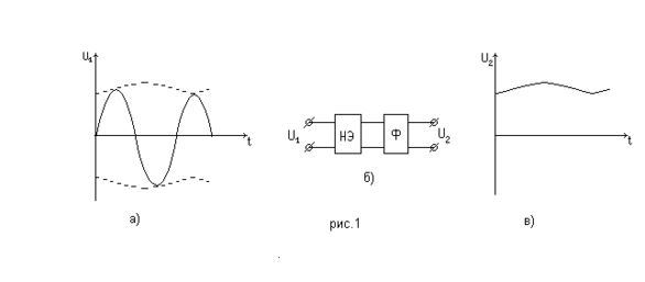 На рис. 1б показана функциональная схема нелинейного амплитудного детектора, содержащая нелинейный элемент (НЭ) и фильтр (Ф), пропускающий модулирующие колебания.