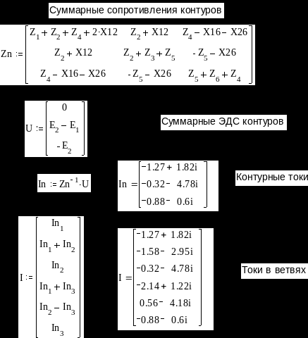 Определение токов методом контурных токов