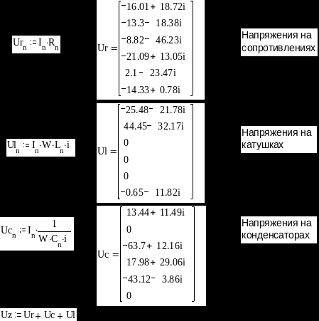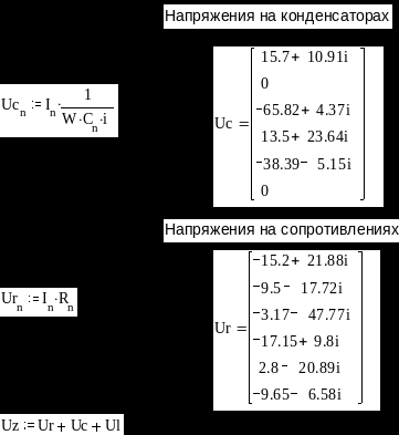 Напряжения на каждом элементе цепи
