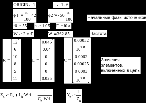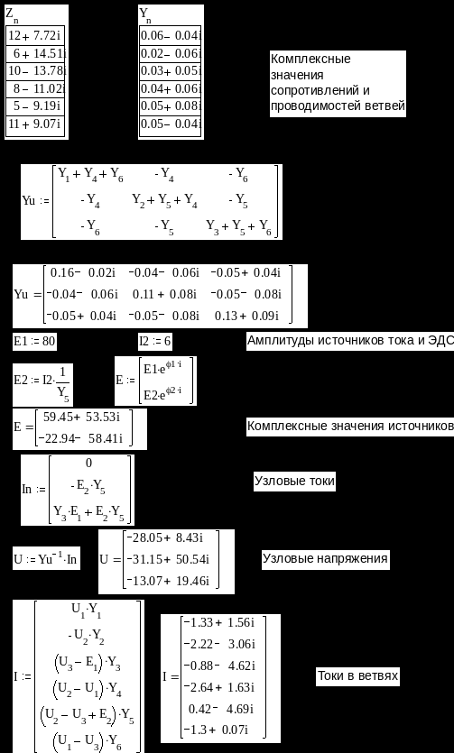 Определение токов методом узловых напряжений