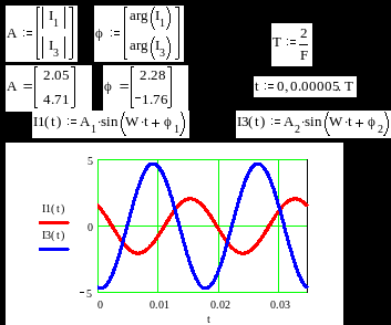 График значений токов в первой и третьей ветвях